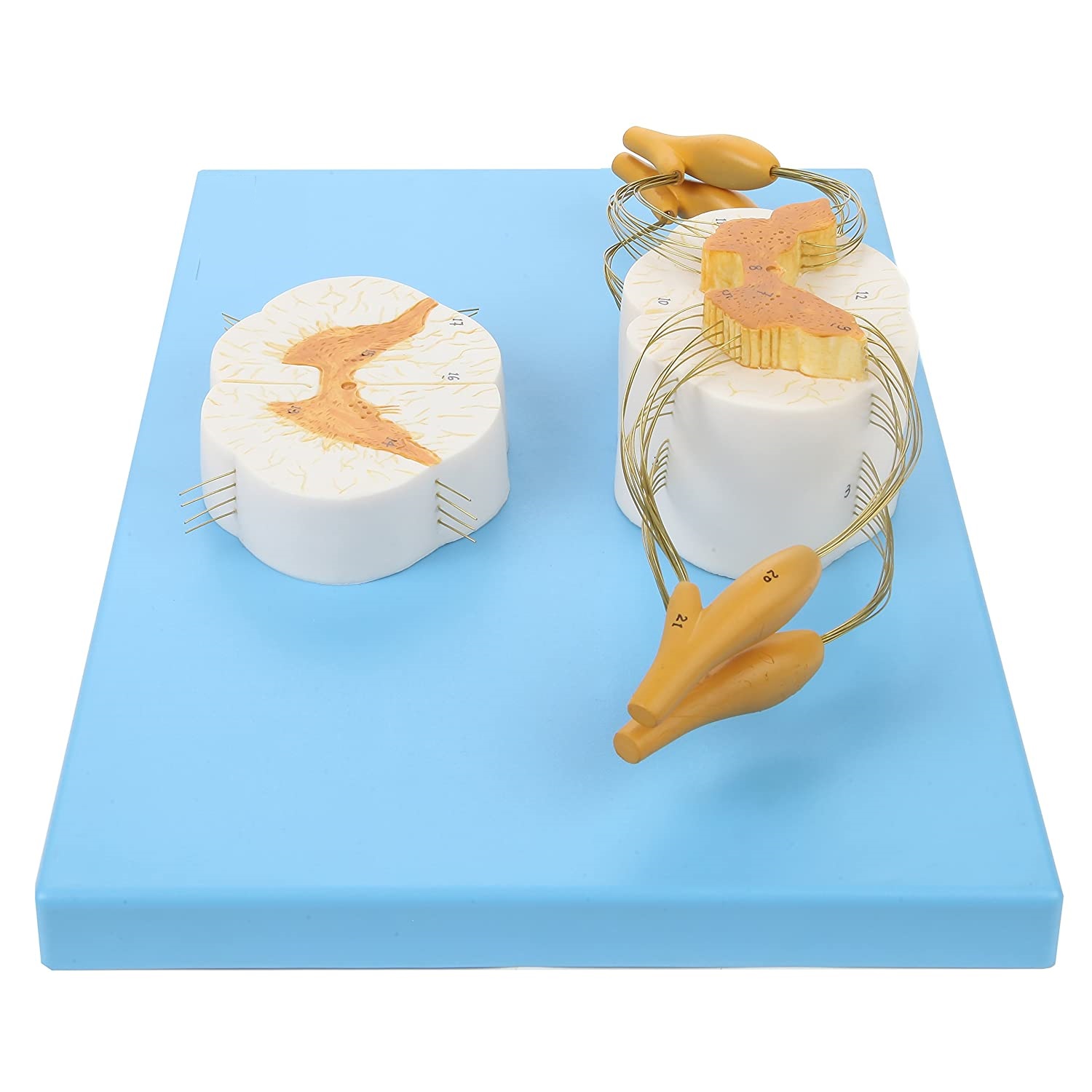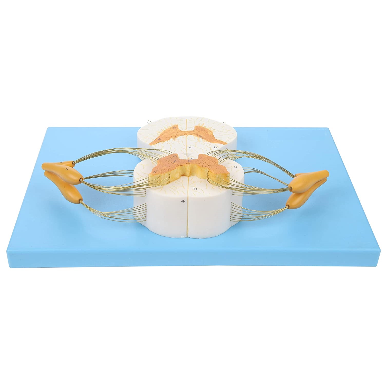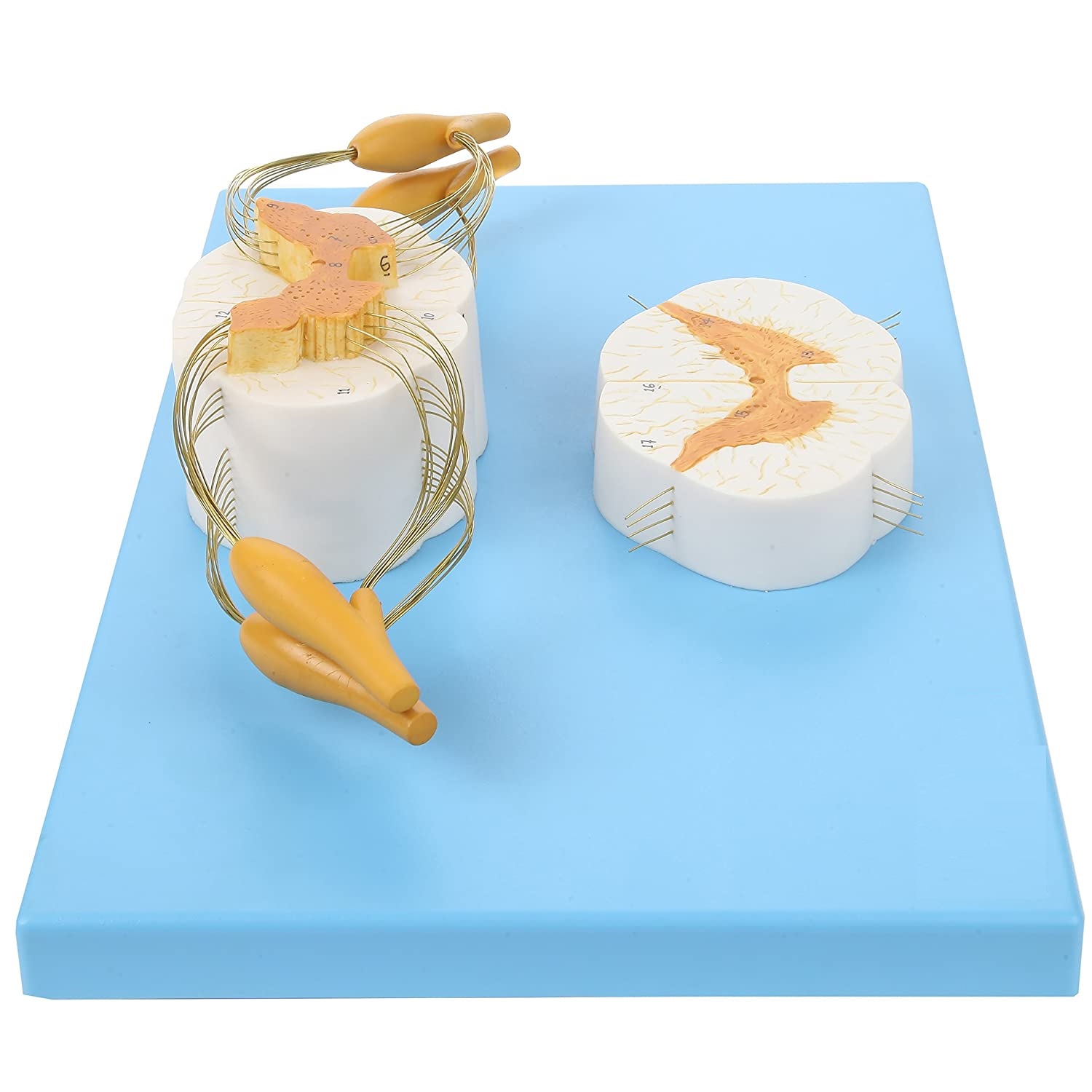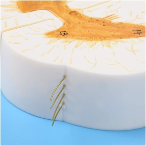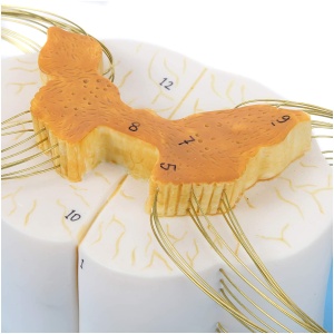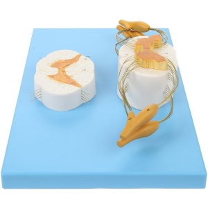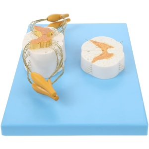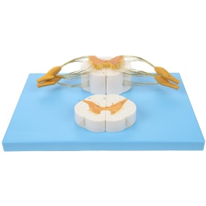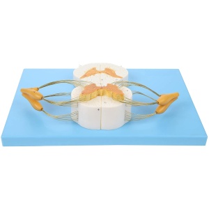 8x Life Size Enlarged Model of the Spinal Cord: This human anatomy model of the spine shows the detail of the anterior and posterior nerve roots with additional depiction of the spinal ganglion. The model is displayed both longitudinally and in cross section for more in depth learning.