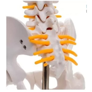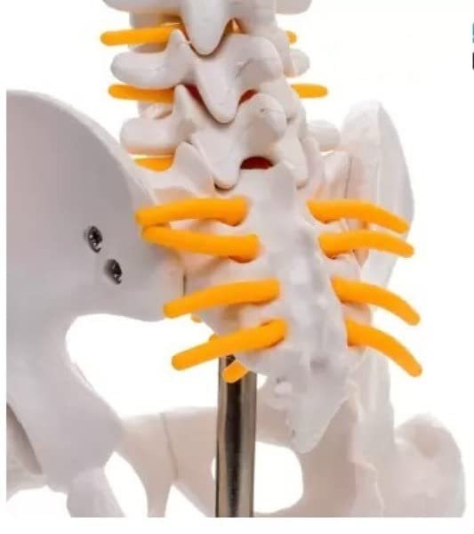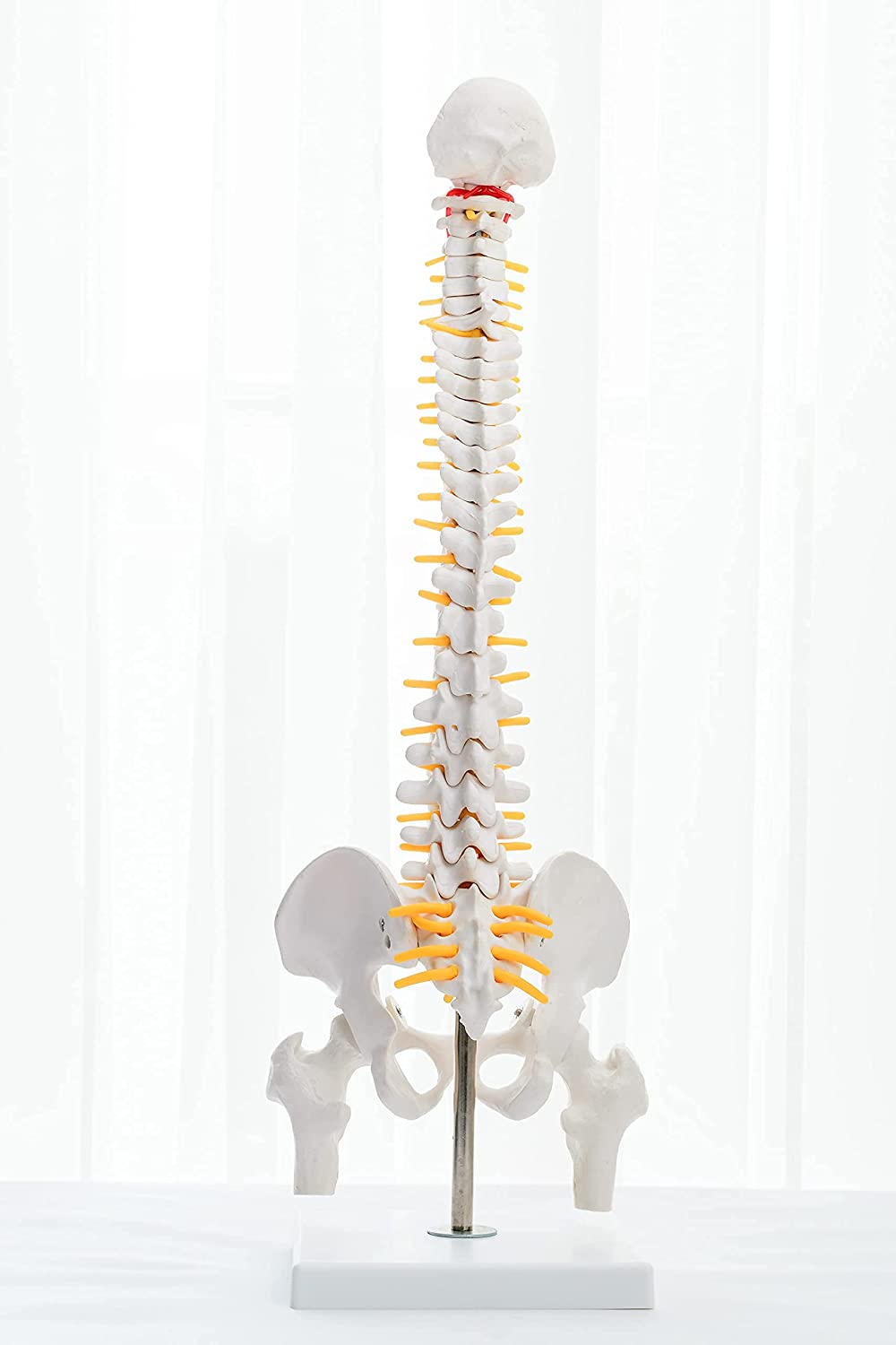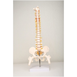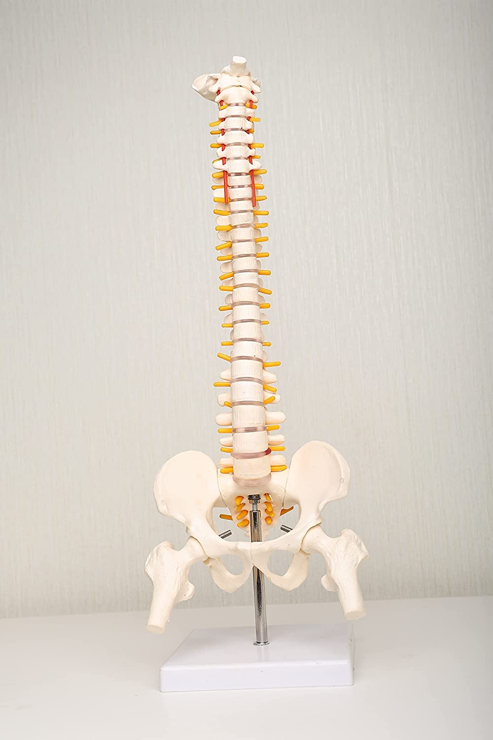 The G.D. Anatomical Miniature Human Spine with Femur Heads Model is an anatomically correct mini replica of the human spine and all its vertebrae. This semi-flexible mini human spine anatomy model consists of 26 identified parts, including the detachable femur heads and a herniated disc at L3 and L4 to provide an understanding of common spinal injury. This 15.5” miniature spine model is the perfect tool to understand the anatomy, movement, and structure of the spinal column for its compact size and portability. The G.D. Anatomical Miniature Spine Anatomy Model comes with a sturdy desktop base stand for proper study and display of the model and detailed, full-color product manual with all 26 anatomy parts identified.
